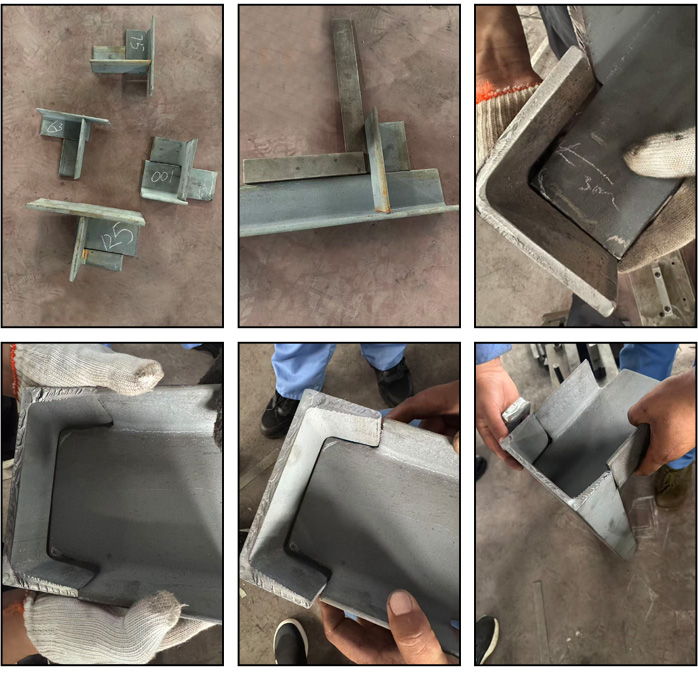 三个油缸独立工作,对角钢,槽钢,圆管进行切断,拼接。